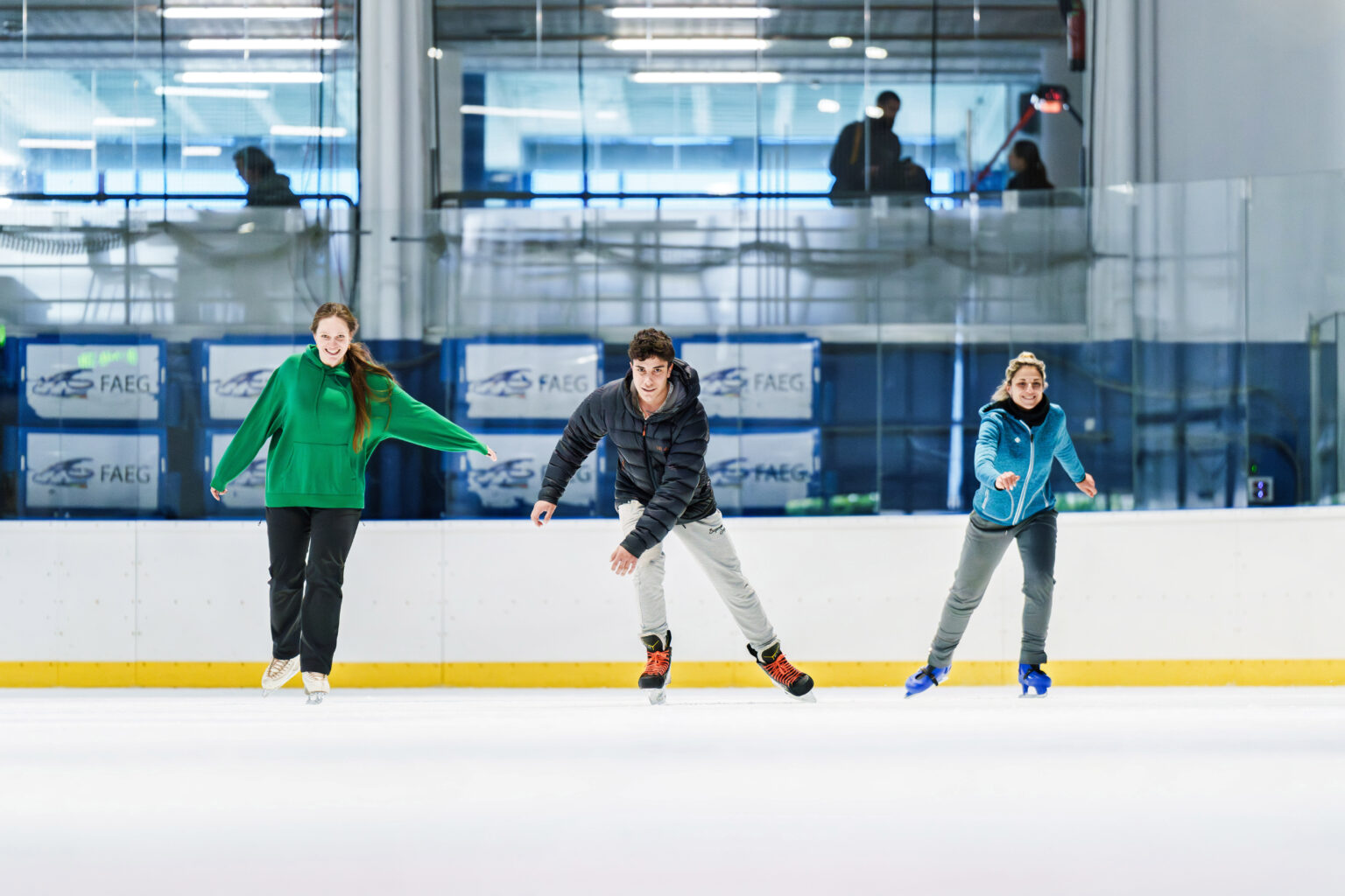 La pista de gel del Palau de Gel obre els 365 dies de l’any i és una de les grans protagonistes del recinte. Apunta’t a una sessió de patinatge, una activitat original i divertida per gaudir en família. Amb sort és fàcil també coincidir amb els entrenaments dels clubs d’hoquei o patinatge i veure les evolucions d’autèntics esportistes.