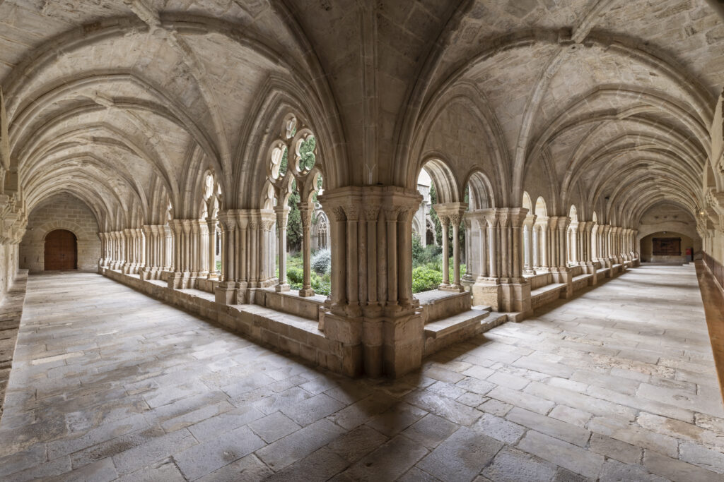 Auster en les formes, però superb en les mides i el bagatge, Poblet destaca per la combinació d’estils romànic i gòtic, amb espais emblemàtics com l’església abacial, el claustre i les dependències monàstiques. La sobrietat i l’harmonia de les seves formes reflecteixen perfectament l’esperit cistercenc, que busca la bellesa mitjançant la simplicitat i la proporció.
